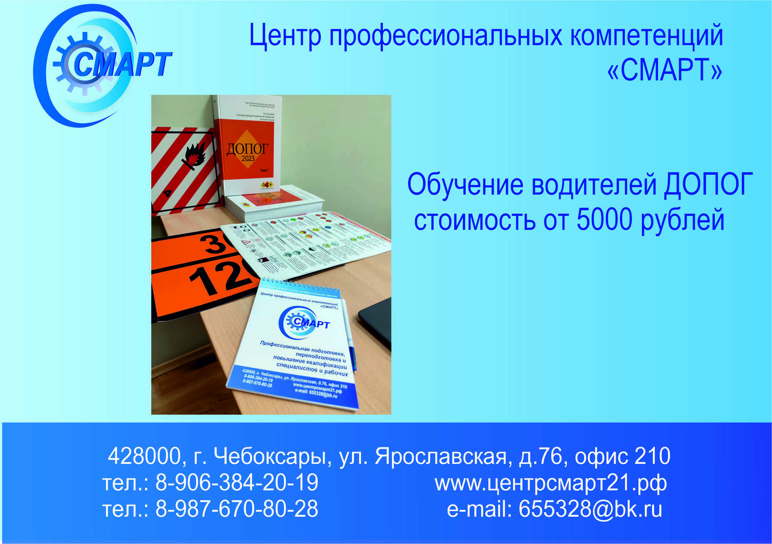 Центр профессиональных компетенций «СМАРТ» приглашает водителей пройти специализированное обучение и получить международное свидетельство ДОПОГ (Европейское соглашение о международной дорожной перевозке опасных грузов).